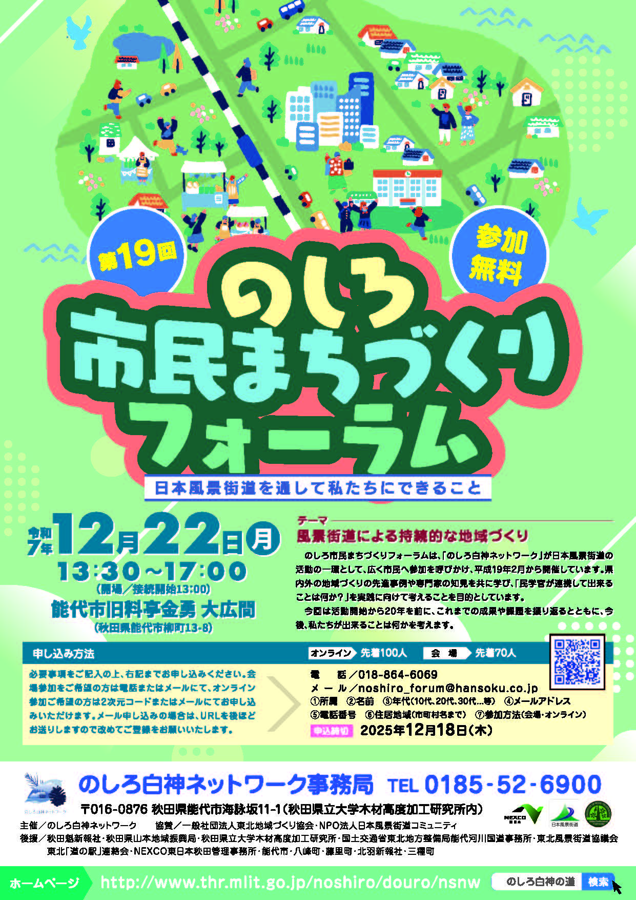 第19回 のしろ市民まちづくりフォーラム開催のお知らせ